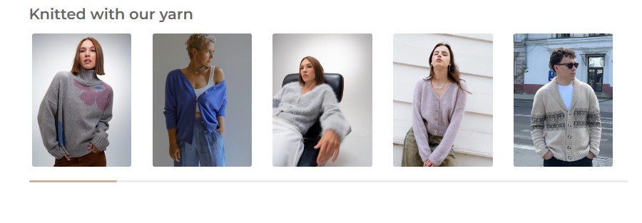 На главной странице сайта в разделе «Knitted with our yarn» вы найдете изделия, которые были связаны из пряжи, представленной в магазине.