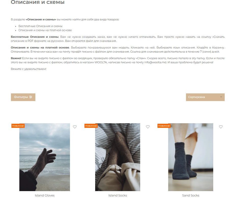 Сайт магазина WOOLTA был разработан с особой любовью и для того, чтобы вам было легко и комфортно им пользоваться.