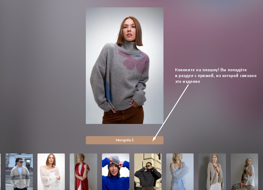 Если вы нажмете на понравившуюся вам модель, то увидите из какой пряжи она была связана. А при клике на неё, вы попадёте сразу в раздел с указанной пряжей.
